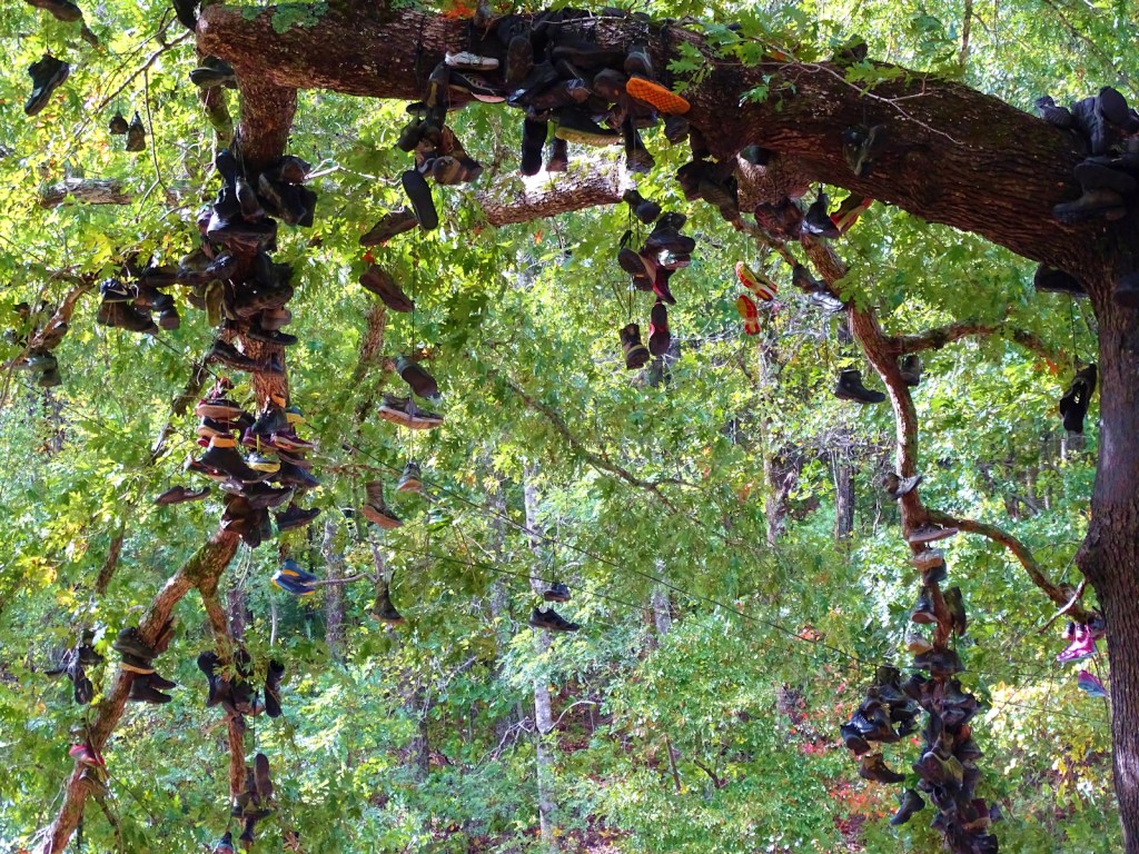 There is a huge tree at Neel’s Gap that is full of hikers’ boots. It is the end of the road for some. The finish line. It’s all she wrote. Kaput.
